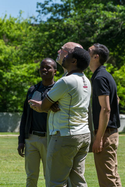 Kurz vor 15:30 Uhr treffen wir uns alle wieder und Beukes gibt einige Instruktionen, wie wir uns auf einem Bush Walk verhalten müssen, z.B. leise sein, hintereinander laufen (im Gänsemarsch). Wir laufen gut 2 Stunden durch den Busch und sehen eine Giraffe und viele Vögel. Außerdem erläutert uns Beukes Bäume und Pflanzen und deren Nutzen sowie die verschiedenen Kot-Sorten der Tiere. Wir wussten gar nicht, dass man so viel über Scheiße lernen kann! Alles in allem eine sehr interessante Tour.