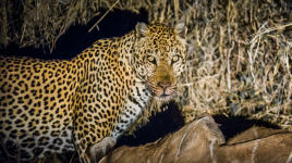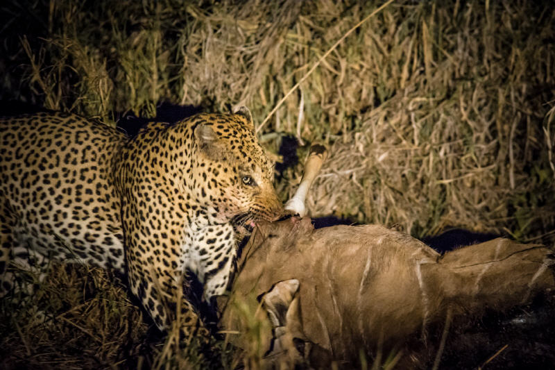 Auf der Rückfahrt zum Camp findet Beukes noch einen Leoparden im Scheinwerferlicht. Ansonsten ist es ruhig.