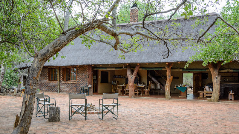 Auf dem Weg zum Rondavel begrüßt uns schon ein Nyala und viele Grüne Meerkatzen. Schnell packen wir unsere Taschen aus und richten uns häuslich ein. Wir relaxen auf unserer kleinen Terrasse, schwimmen eine Runde und sind um 17:30 Uhr an der Lapa. Hier gibt es den Sundowner und wir genießen die umliegende Landschaft. Tiere lassen sich zwar nicht mehr blicken, aber ganz in der Nähe brüllt hin und wieder ein Löwe.