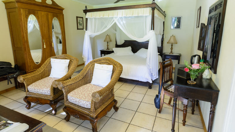 Wir nächtigen übrigens im „Viktoria Room“. Dieses Zimmer ist wunderschön mit alten viktorianischen Möbeln eingerichtet und wir schlafen in einem wunderbaren Himmelbett.
