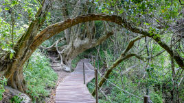 Hinter Knysna zweigt die Straße zu "The Heads" ab. Das sind zwei hohe Sandsteinkliffe an der Einfahrt zur Knysna-Lagune. Man kommt zu einem Aussichtspunkt und von den hölzernen Balkonen hat man einen spektakulären Blick sowohl auf das Meer als auch auf Knysna und die Lagune.