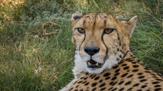 Wir machen Stopp beim "Daniell Cheetah Project". Das ist ein Zentrum, welches sich um verletzte, gefährdete und verwaiste Großkatzen (überwiegend Geparde) kümmert. Man versucht nach Möglichkeit, die Katzen wieder auszuwildern, sobald sie alt genug sind und (wieder) alleine jagen können. Die Führung dauert ca. 1 Stunde und wir bekommen allerhand Informationen. Unser Hightlight ist, als wir zu einem Gepardenweibchen ins Gehege gehen. Wir gehen, natürlich mit unserem Guide, langsam zu Ola, die erst träge im Schatten liegt. Als wir kommen, steht sie langsam auf, kommt auf uns zu und schleicht um unsere Beine. Wir dürfen Ola anfassen, streicheln und hinter den Ohren kraulen. Letzteres scheint sie besonders zu mögen, denn sie schnurrt behaglich. Für uns Gänsehaut pur! Da es heute sehr warm ist (42 Grad in der Sonne), ist Ola ein wenig faul und sie legt sich schnell wieder in den Schatten. Glücklich verlassen wir das Gehege. Wann hat man schon mal die Chance, einen richtigen Geparden zu streicheln!