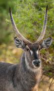 Die Grünen Meerkatzen sind schon aktiv und springen ums Rondavel bzw. auf den umliegenden Bäumen. Ich sitze gerade auf der Terrasse und schreibe an unserem Urlaubs-Blog, da lugt doch tatsächlich ein Nyala-Bock um die Ecke. Er hat keine Scheu und umringt langsam auf der Suche nach Essbarem unsere Terrasse – keine zwei Meter von uns entfernt. Walter und ich halten automatisch die Luft an und meine Hände schweben über der Tastatur. Immer wieder schaut uns das Nyala direkt an, als wenn es sagen wollte: "Wer seid ihr denn?" Irgendwann hat es wohl genug von uns und macht sich aus dem Staub. Das sind echt tolle Momente! Das Nyala, insbesondere das Männchen, ist übrigens ein sehr schönes Tier. Auf unserer Antilopen-Hitliste rangiert es direkt hinter der Oryx-Antilope.