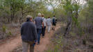 Heute dürfen wir ein bisschen länger schlafen. Wir treffen uns erst um 5:30 Uhr und Kaffee gibt es auch keinen. Wir fahren ein Stück mit dem Jeep und dort gibt es den Kaffee (Tee) und einen Muffin. Anschließend steht ein 2stündiger Bush Walk auf dem Programm. Heute sucht Beukes die Nashornkuh mit ihrem Kalb. Wir kommen an ein wunderschönes Wasserloch und in der Tat treffen wir dort auf die beiden Rhinos - wenn auch nur sehr kurz. Sie ergreifen sofort das Weite, als sie uns wittern. Beukes erklärt, dass aufgrund des Wetters alle Tiere derzeit ziemlich nervös sind. Es geht immer ein leichter Wind. Dieser verhindert, dass die Tiere die Geräusche korrekt lokalisieren können und auch die Gerüche können sie nicht so einfach zuordnen. Aus diesem Grund kommt man auch nicht so nahe an die Tiere heran, weil sie schneller flüchten.