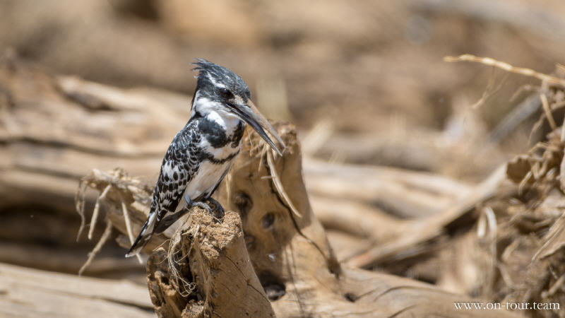 Wir sehen große Herden von Elefanten, aber auch Einzelgänger und jede Menge Büffel. Weiterhin viele Antilopen, Giraffen, Flusspferde, Nyalas, Nimmersatte, Reiher und Marabus, ein paar Löwen, einen Leoparden, zwei Geparde, Schakale, Unmengen von Impalas und natürlich Zebras. Aber wirklich auffallend sind die unzähligen verschiedenen Vogelarten, die im Norden des KNP vorkommen. Insbesondere Blauracken, Webervögel, Bienenfresser und Senegalliesten sehen und hören wir immer wieder. Weiterhin sehen wir Kampfadler, Schopfadler, Schreiseeadler, Hornrabe, Sattelstorch, Frankoline, Kingfisher, Gelb-/Rotschnabeltokos, Graulärmvogel, Sekretär, Trappen, Mohrenklaffschnabel, …